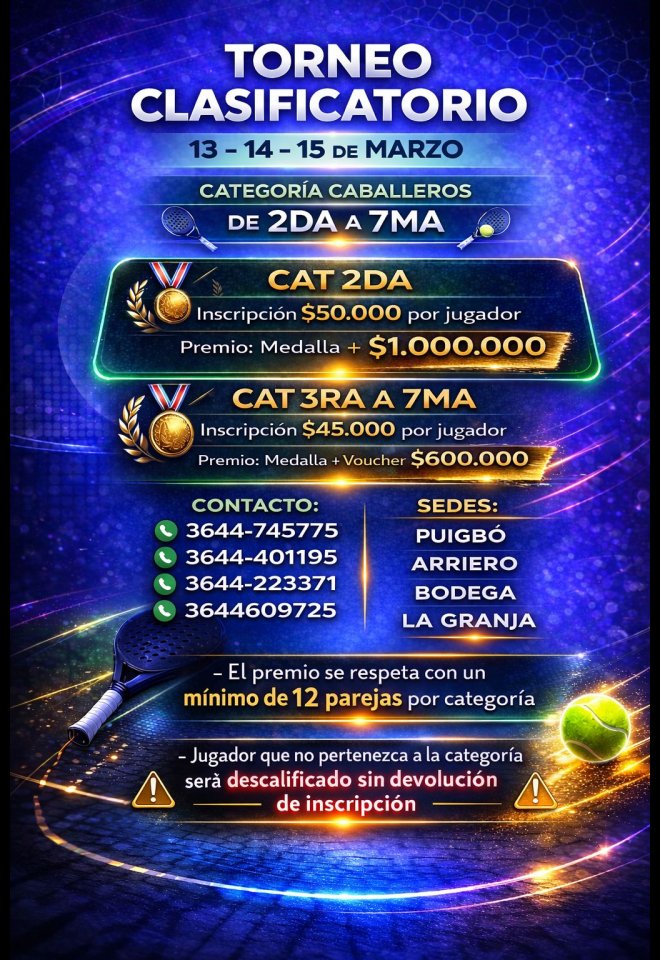»» Evento: PRIMER CLASIFICATORIO MARZO 2026 - CABALLEROS »» Localidad: Roque S. Peña »» Fechas: 13/03/2026 al 15/03/2026